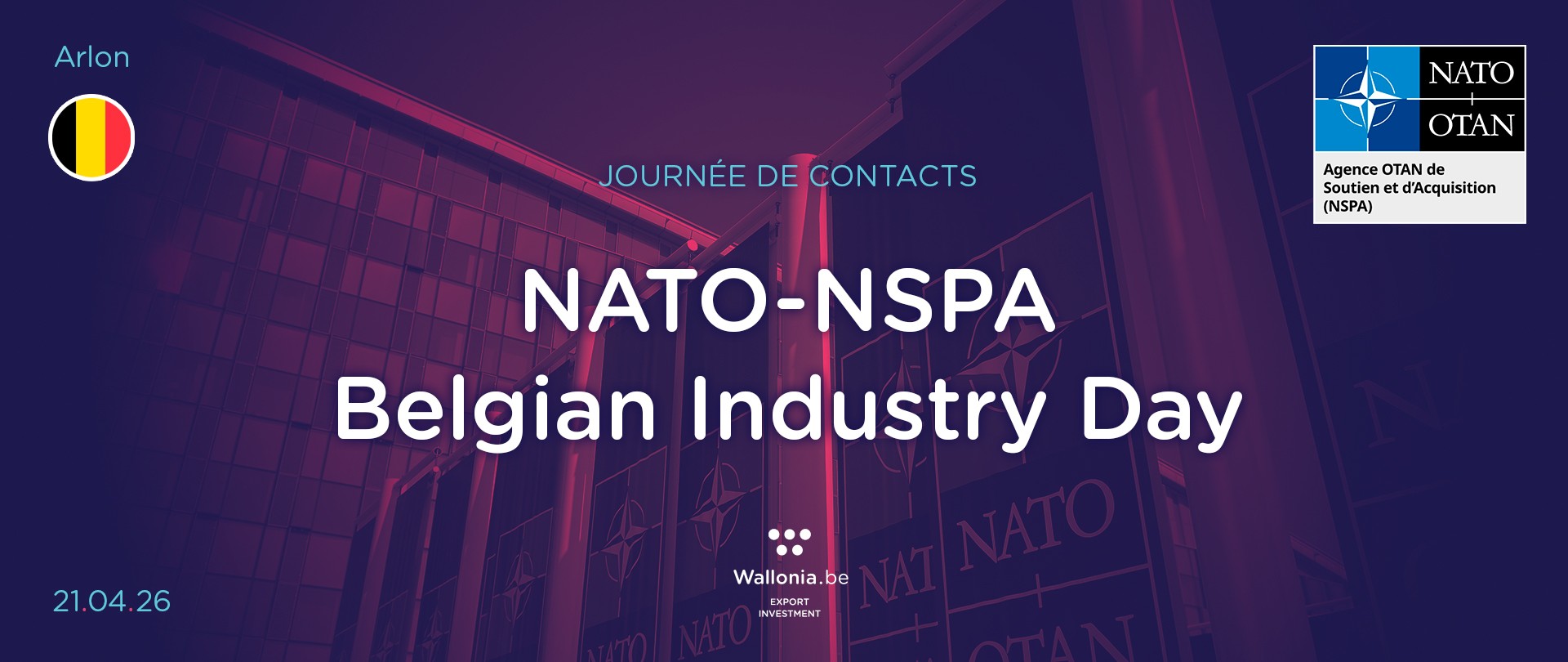 L’Agence wallonne à l'Exportation et aux Investissements étrangers (AWEX), en collaboration avec Flanders Investment & Trade et hub.brussels, organise le 21 avril 2026 à Arlon une journée de rencontres avec la NATO Support and Procurement Agency (NSPA).